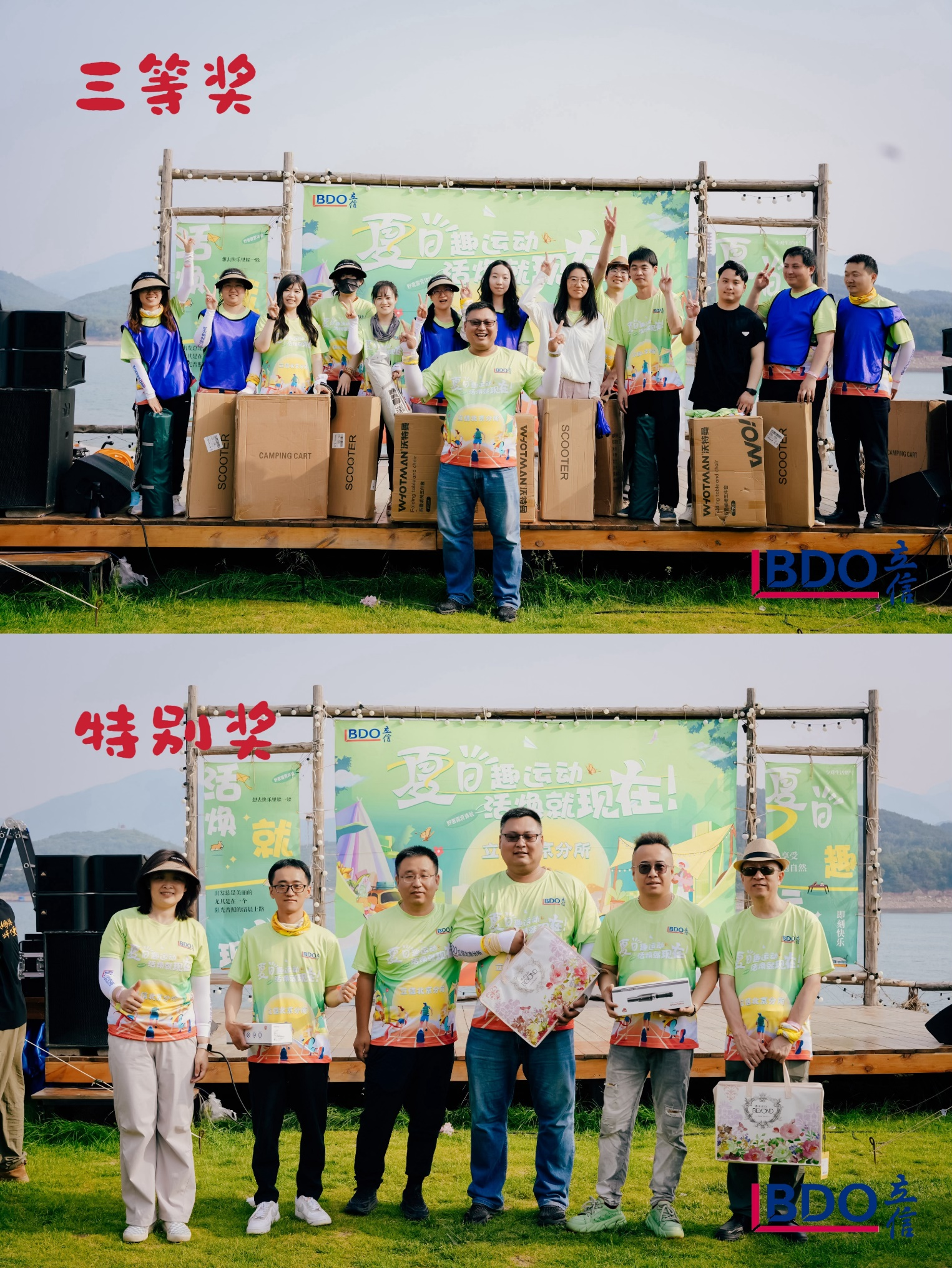 此次趣味运动会赛程两个半小时,比赛项目分别是旱地龙舟、众星捧月、连体战士、同舟共济、俄罗斯方块及趣味拼图。在这青山绿水中,鸟语花香下,将所有参与者分为16支队伍。每支队伍12人左右,此次竞赛设有一等奖、二等奖、三等奖、特别奖在内的39个奖项,奖品十分丰富,包括床上用品四件套、摩飞吸尘器、雀巢胶囊咖啡机、野兽派香薰、倍轻松按摩仪、西屋空气循环扇、星巴克水杯、野营桌椅、户外天幕、营地车、平衡车等,所有参与者均可获得参与奖。在比赛过程中,团队相互协作,共同努力,用时2小时30分完成了比赛。