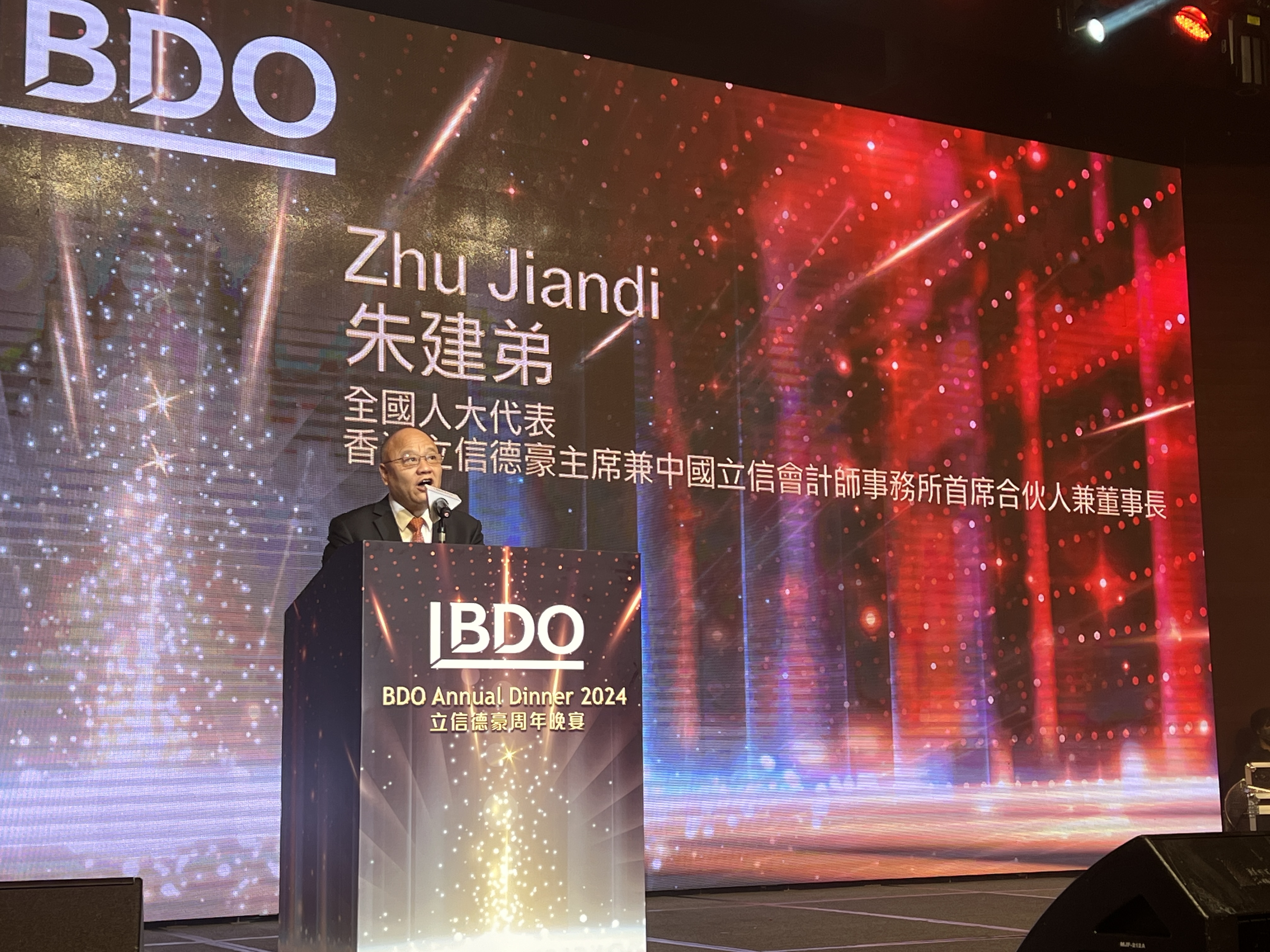 新年新气象,香江春来早,立信会计师事务所董事长朱建弟率中国区董事及香港其他业务负责人参加香港立信德豪会计师事务所新年迎春晚宴。2024年1月5日香港会展中心,香港立信德豪全体员工欢聚一堂,千人晚宴,新朋老友,共叙情谊。在团圆的时刻,朱建弟董事长发表了重要讲话,向立信德豪全体合伙人和员工致以新春最美好的祝福。